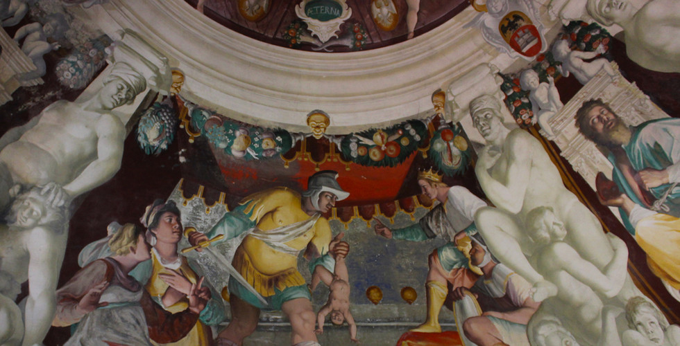 Palazzo Giustiniani si trova a Bassano Romano in provincia di Viterbo. All'interno del palazzo hanno prestato opera numerosi artisti come Antonio Tempesta, Bernardo Castello, Marcantonio Piemontese, Antonio Gaio, il Domenichino (Domenico Zampieri), Cavalier Borghese (Palo Guidotti) e Francesco Albani.